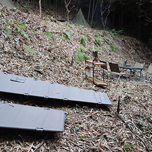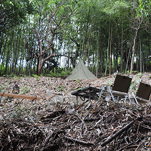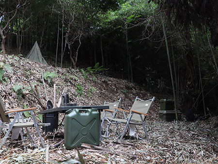【横須賀船越キャンプサイトNo,4】は、静かな竹林を切り開いた静かなキャンプサイトです。ひっそり感のあるこの場所は、ゆっくり落ち着ける雰囲気があります。仲間以外に誰も来ませんから、ゆったりくつろげる場所です。ひな壇になっていますので、面白いと思います。焚火やBBQなど、キャンプ好きにはたまらない時間の過ごし方ができます。季節によっては、タケノコ狩りもできます。 |