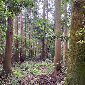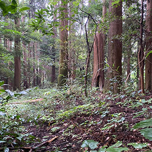 【小田原早川キャンプサイト】は、小田原市早川エリアの渓流沿いにある森にあります。小田原は相模湾と箱根の山々が交差する海と山が近いエリアです。すぐそばの早川でも釣りが楽しめます。シーズンには鮎釣りやヤマメ釣りができるそうです。川で魚を採ったら、そのままキャンプサイトで焼いて食べるというのはワイルドな遊び方です。川から所要時間は車で数分の場所にあるキャンプサイトは、一本道をあがってたどり着く森の中でひっそりと静かにキャンプを楽しむのに適した場所です。一本道の両側には果樹農園になっていて、田舎の農村のような里山を抜けてたどり着くことができます。素敵な一本道からの景色も良好で、ここから気分が盛り上がります。この道の突き当りに森があります。フラットが続くこの森は、決して荒々しくなく、ゆったりできる感じがあります。そこに立ち並ぶ木々は入口近辺が杉林になっていて、常緑のじゅうたんが敷き詰められたようで、とても清潔感があります。森の入口周辺から奥に入っていくと、少し上り坂の傾斜地になっていますが、雑木が増えて、ブッシュクラフトの様相を呈してきます。奥に入るほどワイルドな感じが高まっていくので、お好みの場所を選んでステイするのがいいでしょう。日によっては靄に包まれるのもなんとも幻想的な雰囲気を醸し出しています。本格的なブッシュクラフトが楽しめるキャンプサイトです。もちろん、キャンプサイトに横付けして駐車することもできますので、キャンプギアを持ち込んで楽しむのにも便利です。【小田原早川キャンプサイト】は、暗くうっそうとした森特有の怖さがなく、スタッフからも人気のあるキャンプサイトです。ここは、季節や時間帯によっても様々な表情を見せてくれる森のキャンプサイトです。