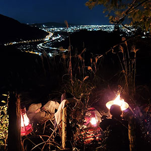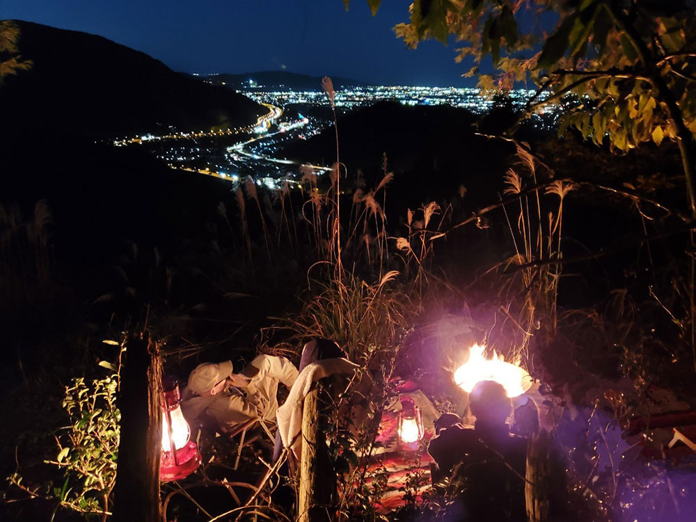 | 【足柄山北キャンプサイト】は、山間から小田原の夜景が一望できる数少ないスポット。星降る夜景がお楽しみいただけます。点在する山々や東名高速を走る車を眼下に見下ろしながら、ゆったりと自然に親しむことができます。いわゆる広場のある区画割のキャンプ場ではなくて、他に誰もいない。誰も来ない場所を占有して、焚き火を楽しめるのは珍しいと思います。誰もいない山奥に、車を乗りつけて、夜景を見ながら火を起こし、星空の下でのんびりと過ごす時間はいかがでしょうか?双眼鏡や望遠鏡を使って、普段では見ることができない星や夜景や夜の森、風にそよぐ植物たちと過ごすのも楽しいですね。早春には梅が咲き乱れます。自然の中で時間を忘れて大切な人と素敵な時間をお過ごしください。東南向きの軽い斜面ですから、日当たりも抜群です。小高い山の上にあるので、近くの駅から歩く場合には、約40分のハイキングが必要になります。車の場合も途中ヘアピンカーブが楽しめる方限定でお願いします。 |