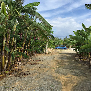 那覇からのアクセスでは、レンタカーで沖縄自動車道で名護方面に向かってください。大まかな説明。那覇空港 → 沖縄自動車道 豊見城・名嘉地I.C.より → 沖縄自動車道 許田I.C. → 東村に向け、国道58号線を北上→ 名護市源河あたりで右折して県道14号で山越えルートへ→約8kmで東村の南玄関有銘にはいり、そのまま直進して東村へお越しください。那覇空港から約92km 約2時間50分の距離です。