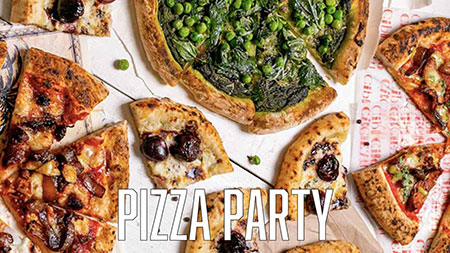 ピザパーティはBBQと並んで人気のアウトドアパーティ料理です。ピザはダッチオーブンを使って焼くのがおすすめ。お好きな具材を持ち込んで、何種類も作ってみてはいかがですか?強力粉、薄力粉、塩、砂糖があれば、生地から作れます。もちろん、ケータリングピザを注文してしまってもOK。持ってきてくれますよ・・・・・ |