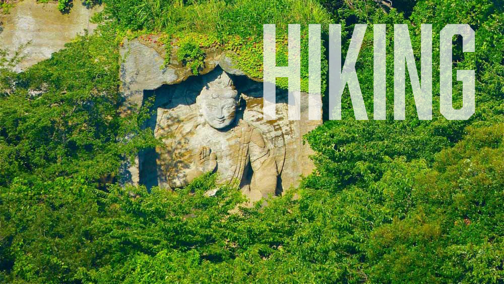 【マイキャンプ】の施設は、そのままハイキングコースにつながっている場合が多くあります。例えば、横須賀船越の施設【横須賀船越キャンプサイトNo,1】【横須賀船越キャンプサイトNo,2】【横須賀船越キャンプサイトNo,3】【横須賀船越キャンプサイトNo,4】【横須賀湘南鷹取キャンプサイト】は、山頂からそのまま「鷹取山ハイキングコース」につながっています。山の中のハイキングコースから樹林に入ると間もなく鷹取山に着きます。 鷹取山は標高139mで、山頂は広く、岩が切り取られていて、ロッククライミングをしている人たちが多いです。 が、あちこちに岩登り禁止の表示があります。戦国時代の武将である大田道灌が、ここでタカ狩りをしたことから、鷹取山になったと言われます。 展望台からは、東京湾、房総半島、相模湾、丹沢の山々など、360度見渡すことができます。「鷹取山」は神奈川県横須賀市と逗子市の間に位置する山で、「湘南妙義」の呼び名で親しまれています。切り立った岩壁が特徴的で、明治~昭和初期まで石切場として岩を採掘したために利用されていました。鷹取山周辺は公園として整備され、展望台からの眺めは格別。鎌倉や江ノ島、湘南エリアから伊豆箱根、天気の良い日には富士山まで見渡せる絶好のビューポイントです。鷹取山の頂上にある展望台からの景色はバツグン!手前には鎌倉、江ノ島、湘南エリアが広がり、海の向こうには伊豆、箱根も。天気の良ければ富士山まで見渡すことができるビューポイントです。さらに、春には桜、秋には紅葉が広がり、季節ごとに違った景色が楽しめる展望スポットとして人気があります。鷹取山の象徴的な岩壁は、クライミングスポットとしても長い歴史があり、週末には壁を必死に登るクライマーを見ることができます。こちらの岩壁は、事故を防ぐため一般の人が登ることは禁止されており、自由に登ることはできません。クライミングを希望する場合には鷹取山安全登山協議会への登録が必要となります。詳しくは鷹取山安全登山協議会(046-825-2350)へ。鷹取山のもう一つ特徴的なのが、岩に彫られた巨大な磨崖仏。岩の壁の間を歩き続けていると、やっと木々の間から弥勒磨崖仏が顔をだします。巨大な箱の中に納められたような姿は、破壊されたバーミヤンの石仏を彷彿とさせます。磨崖仏の顔を良く見ると、西洋人のようなハッキリとした顔立ち。インドのガンダーラ美術の影響が見受けられます。高さ約8m、幅約4.5mのこの弥勒菩薩尊像は、横須賀市の彫刻家・藤島茂氏が約1年をかけて製作した作品です。ちなみに、以前はもうひとつ釈迦如来像も存在していましたが、そちらは地元の学校建設のため取り壊されています。鷹取山公園からは景色が開け、パノラマが広がります。公園内は、岩壁や磨崖仏、展望台など見どころが満載です。